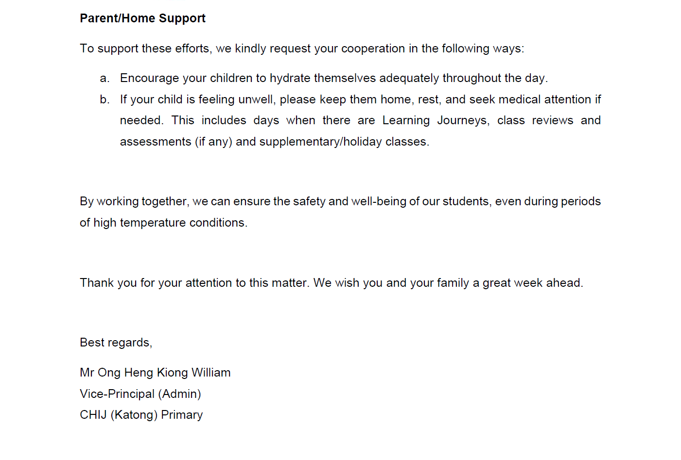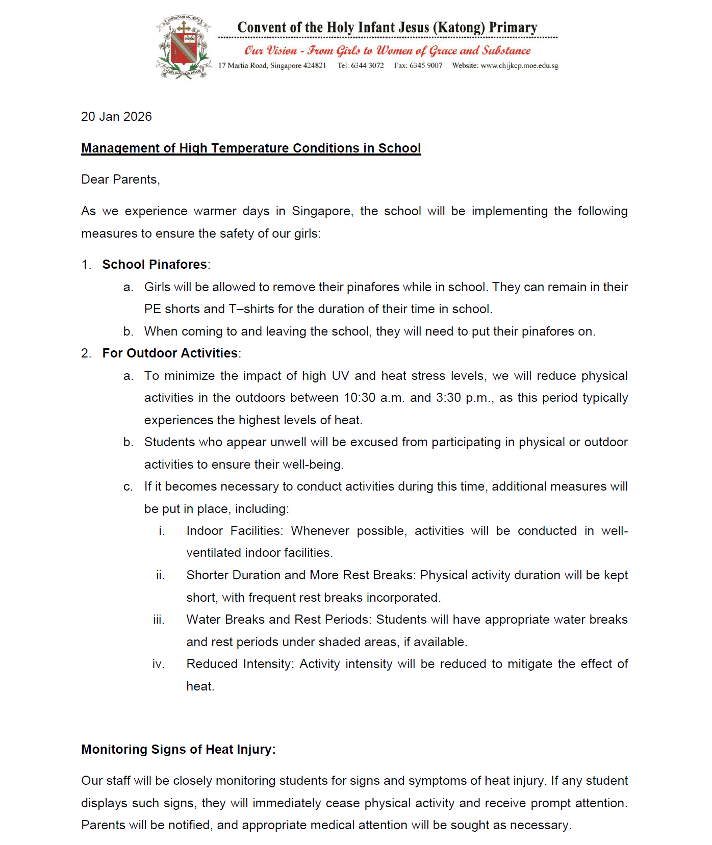 Management of High Temperature Conditions in School